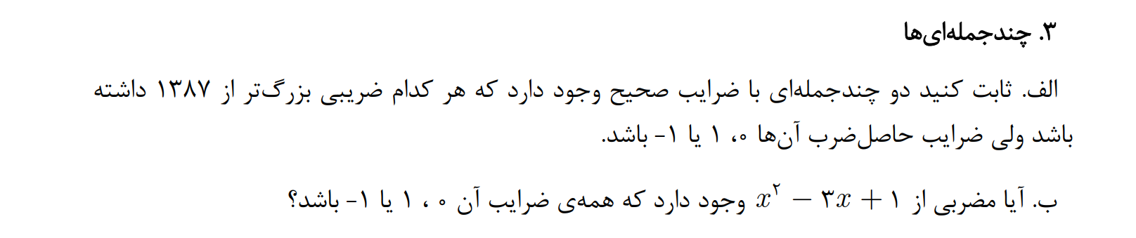 سؤالات آزمون خلاقیت، دوره تابستان المپیاد ریاضی ایران، سال ۱۳۸۷