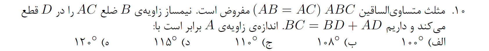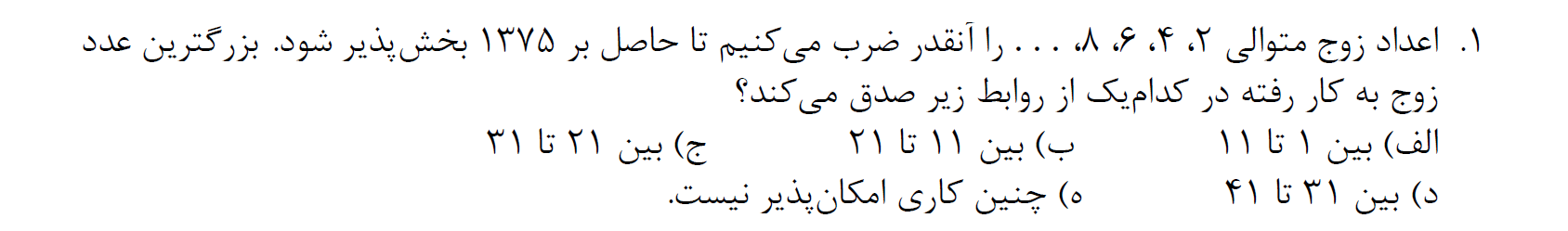 سؤالات مرحله اول المپیاد ریاضی ایران سال ۱۳۷۵ (نوبت دوم)