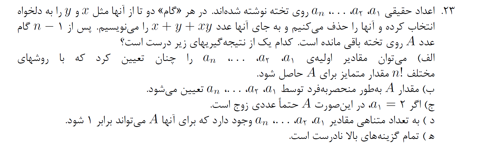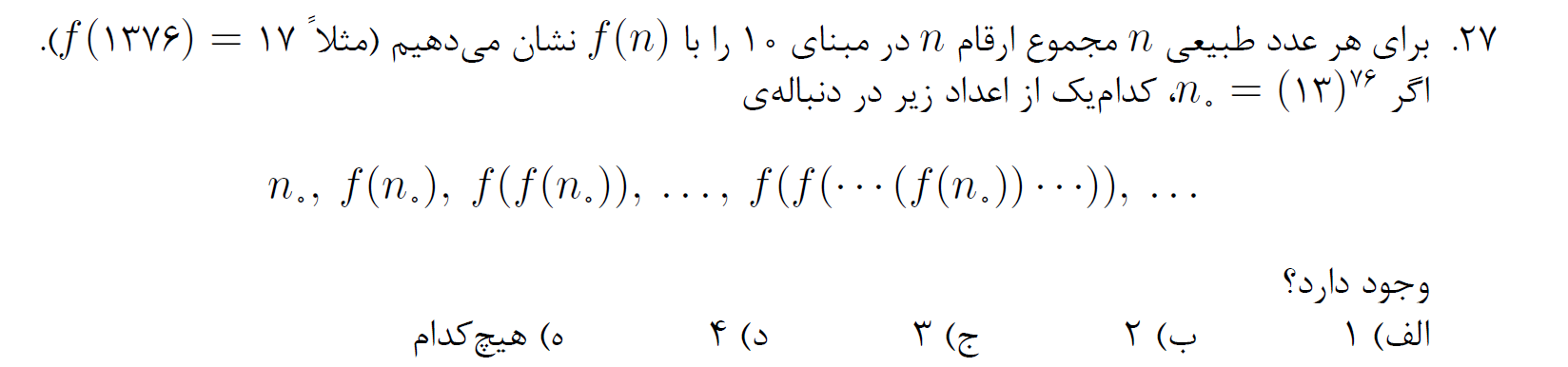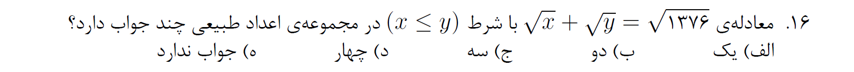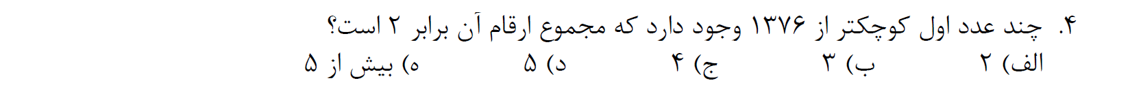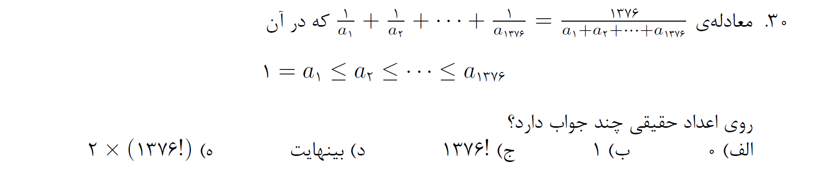 سؤالات مرحله اول المپیاد ریاضی ایران سال ۱۳۷۶