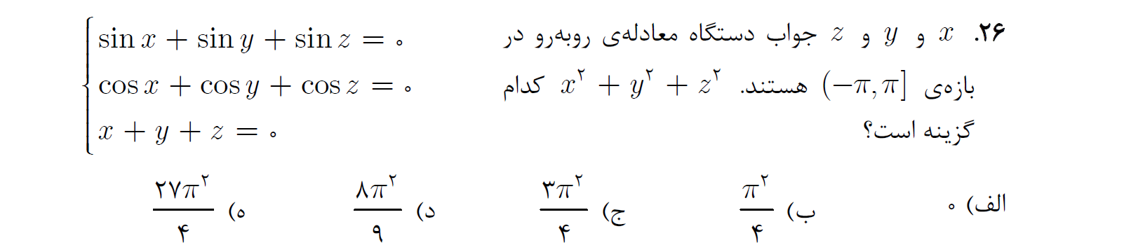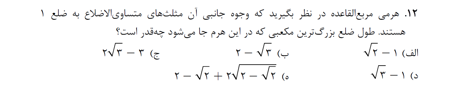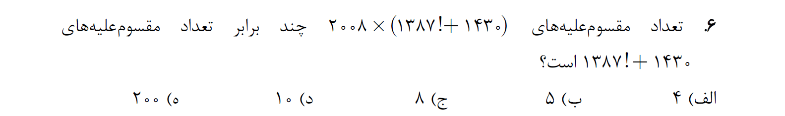 سؤالات مرحله اول المپیاد ریاضی ایران سال ۱۳۸۷