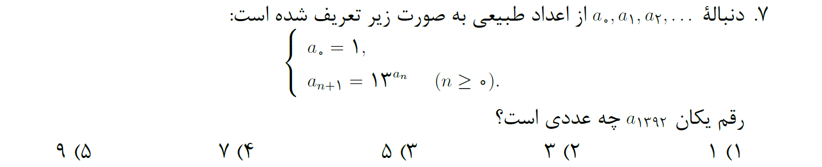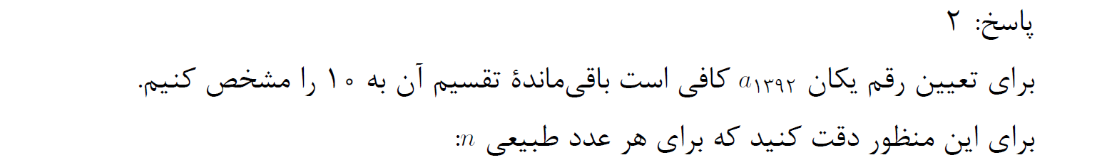 سؤالات مرحله اول المپیاد ریاضی ایران سال ۱۳۹۲