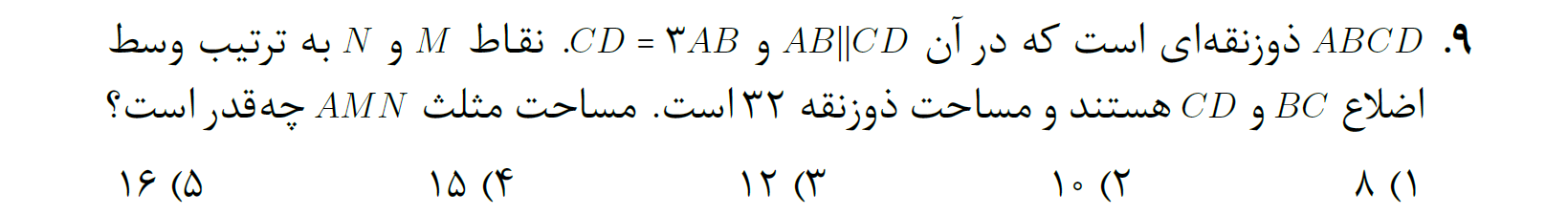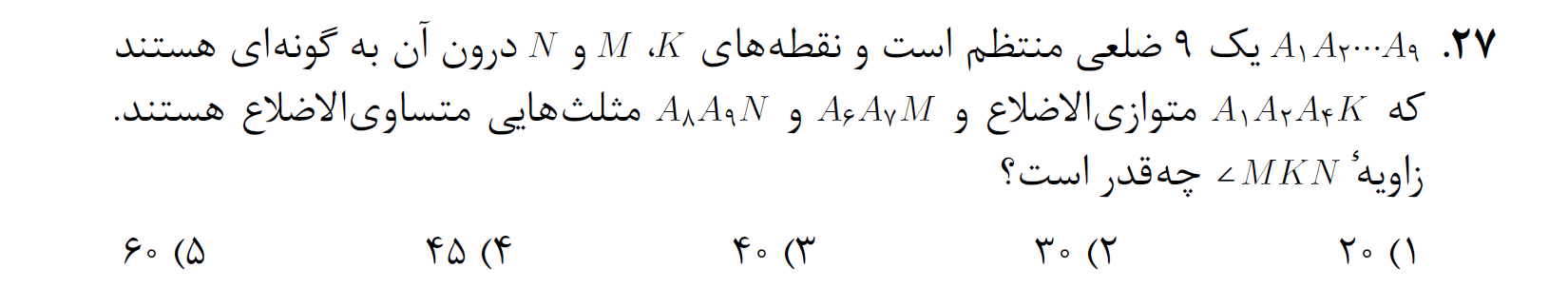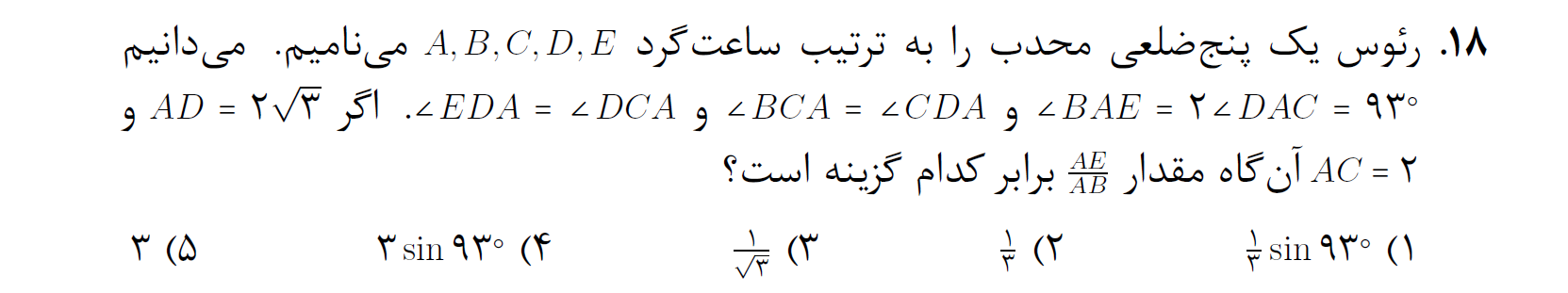 سؤالات مرحله اول المپیاد ریاضی ایران سال ۱۳۹۳