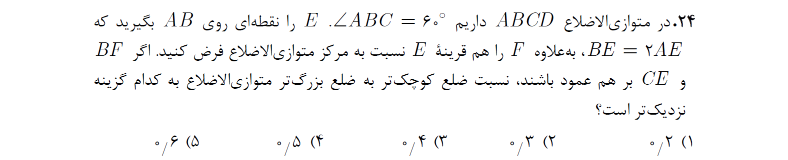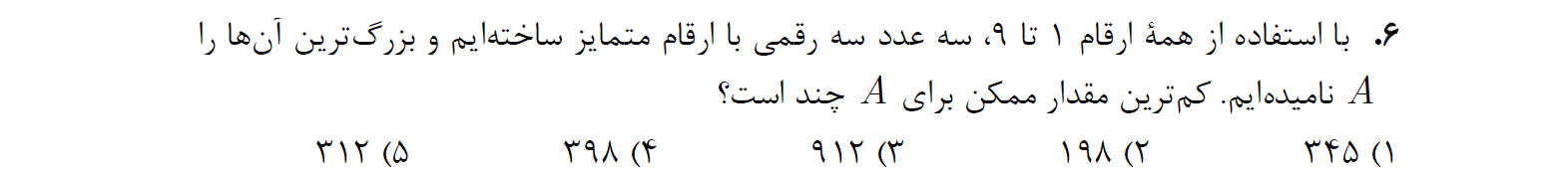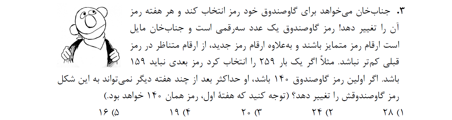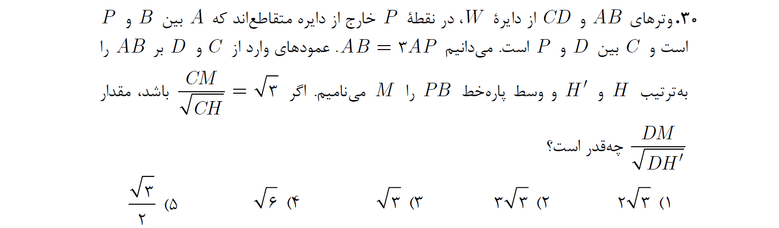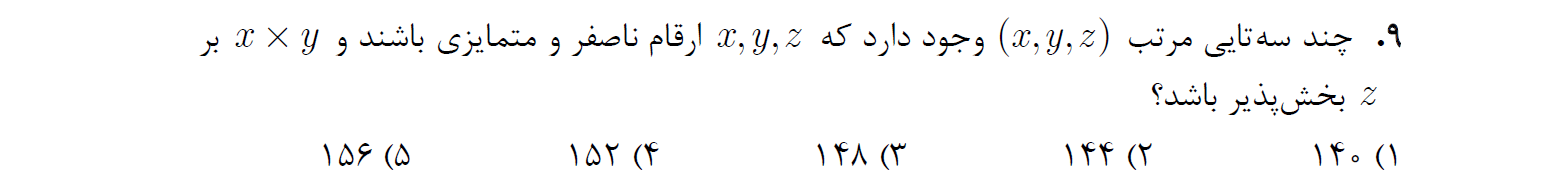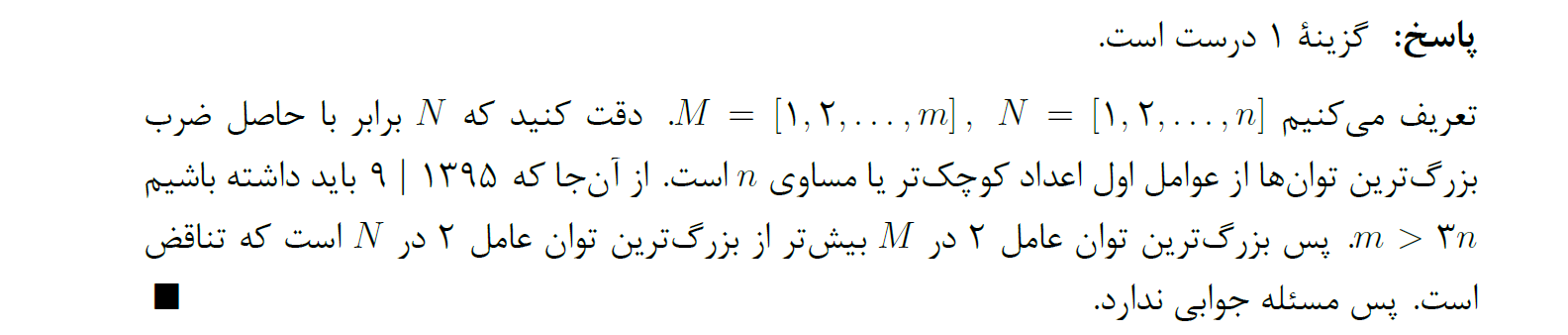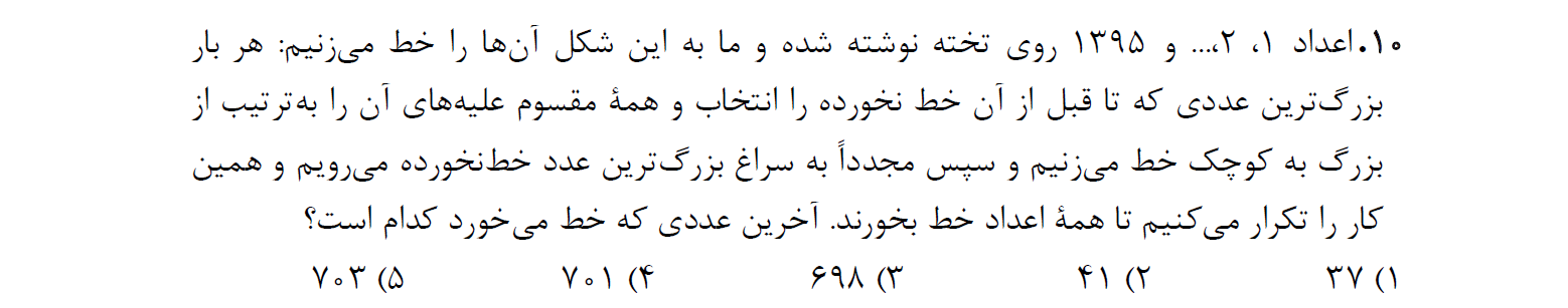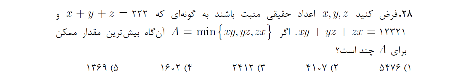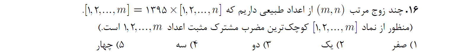سؤالات مرحله اول المپیاد ریاضی ایران سال ۱۳۹۵