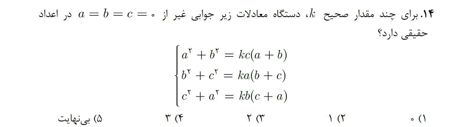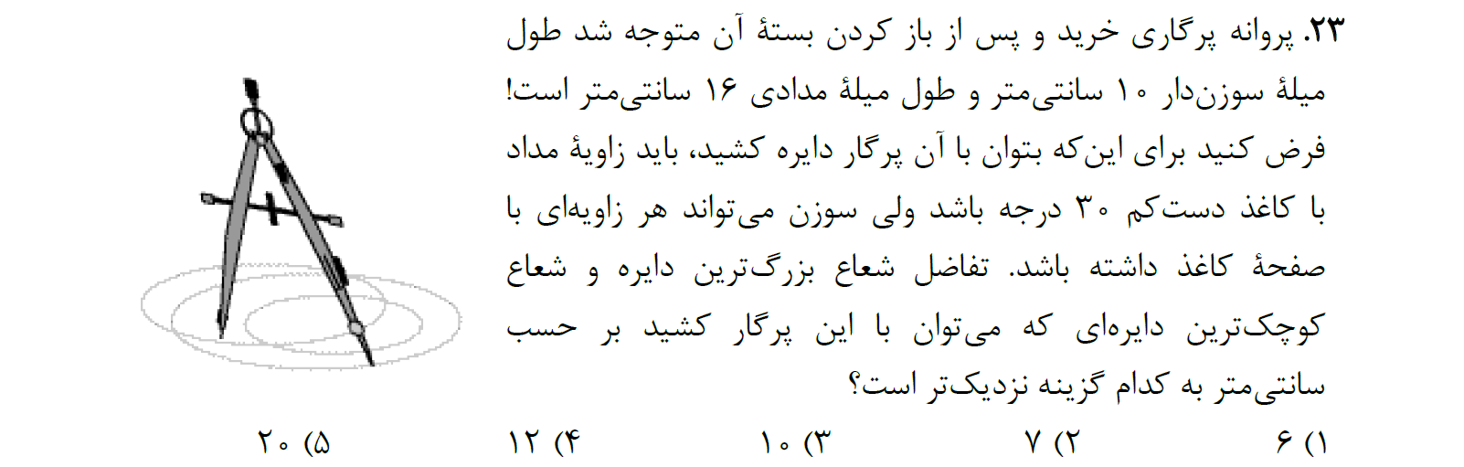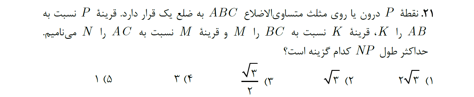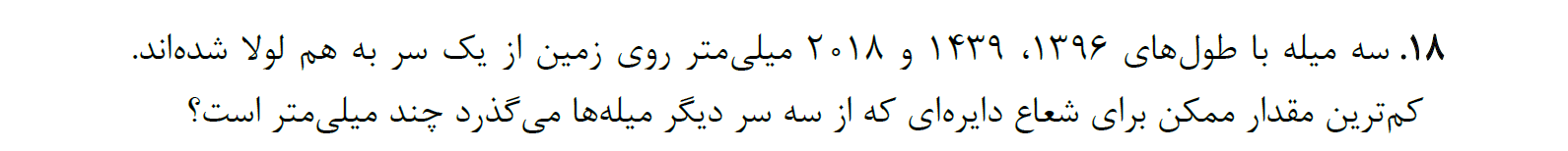 سؤالات مرحله اول المپیاد ریاضی ایران سال ۱۳۹۶