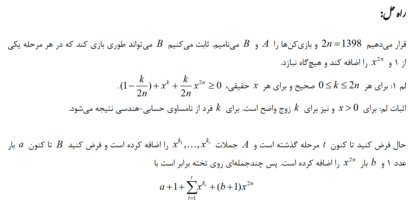 سؤالات مرحله دوم المپیاد ریاضی ایران سال ۱۳۹۸