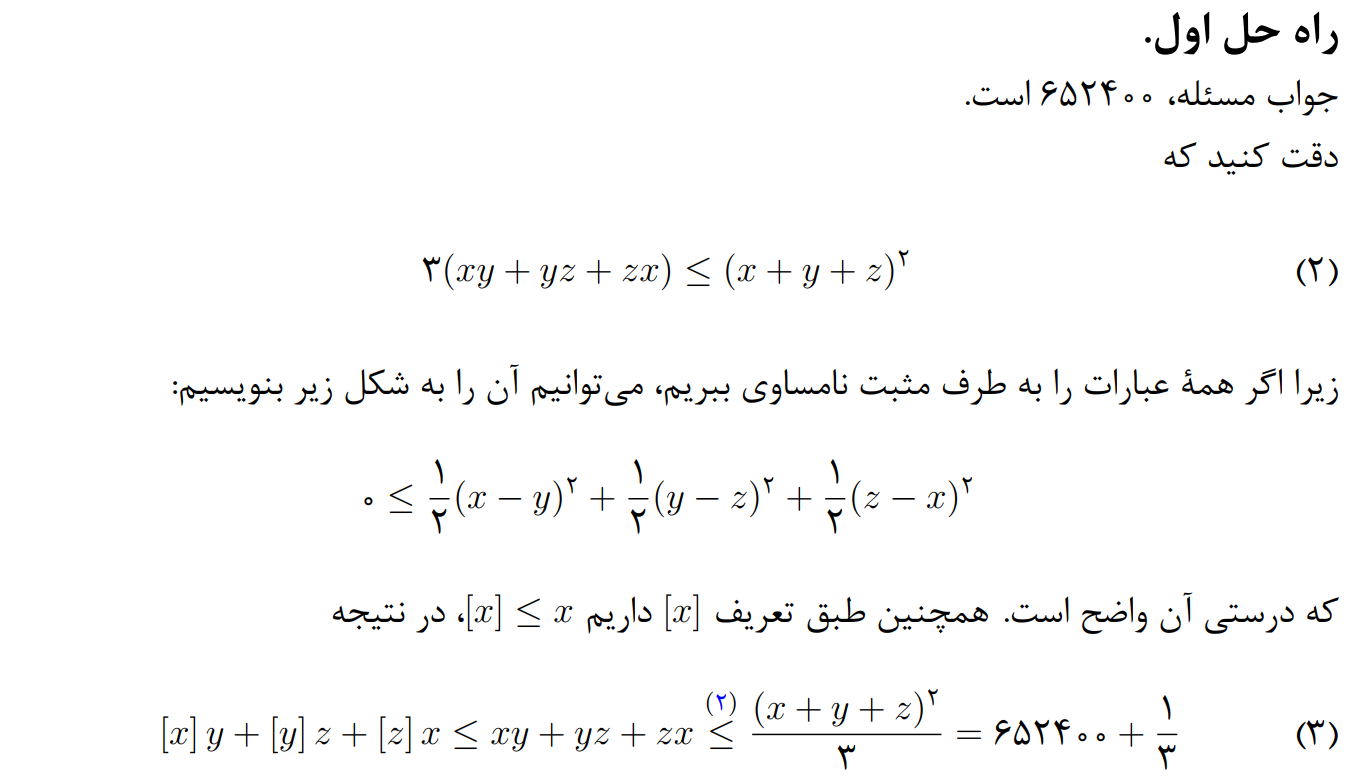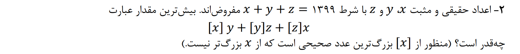 سؤالات مرحله دوم المپیاد ریاضی ایران سال ۱۳۹۹